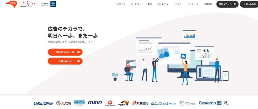 ASUE株式会社は、リスティング広告を軸としながらも、SEOやSNS、コンテンツマーケティングといった多様な打ち手を組み合わせた統合的なWeb戦略の立案が可能です。