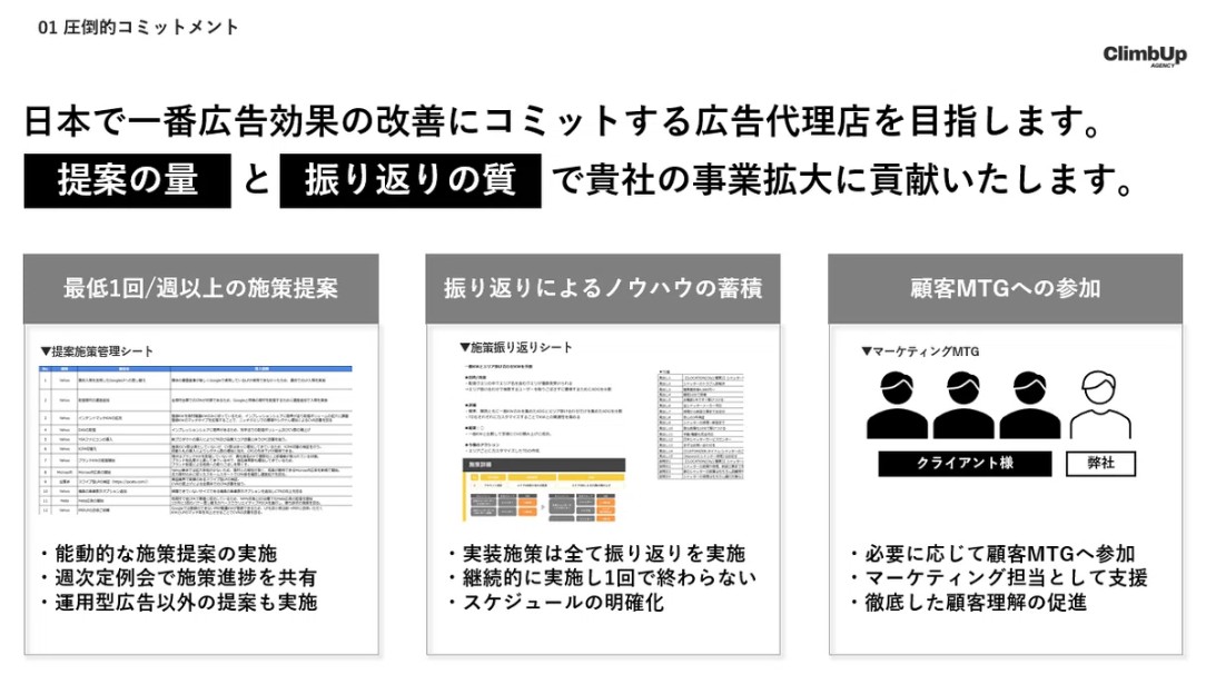 ▼Climbup Agencyの広告支援サービスをチェック